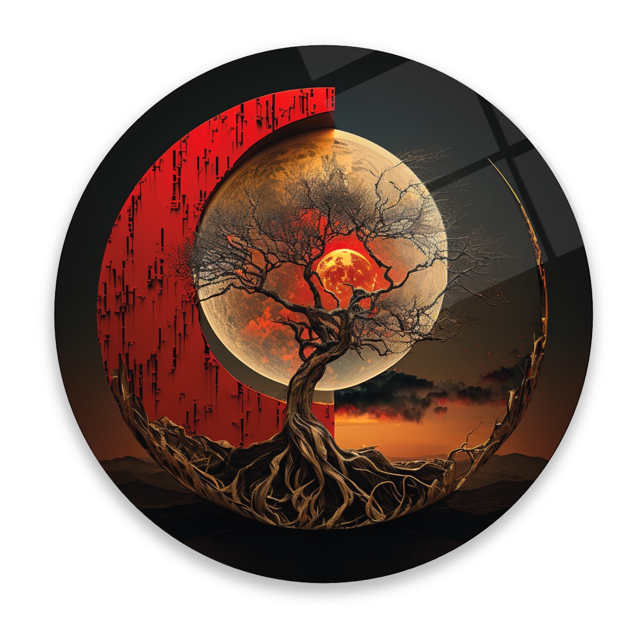 Gece Manzarası Yuvarlak Cam Tablo