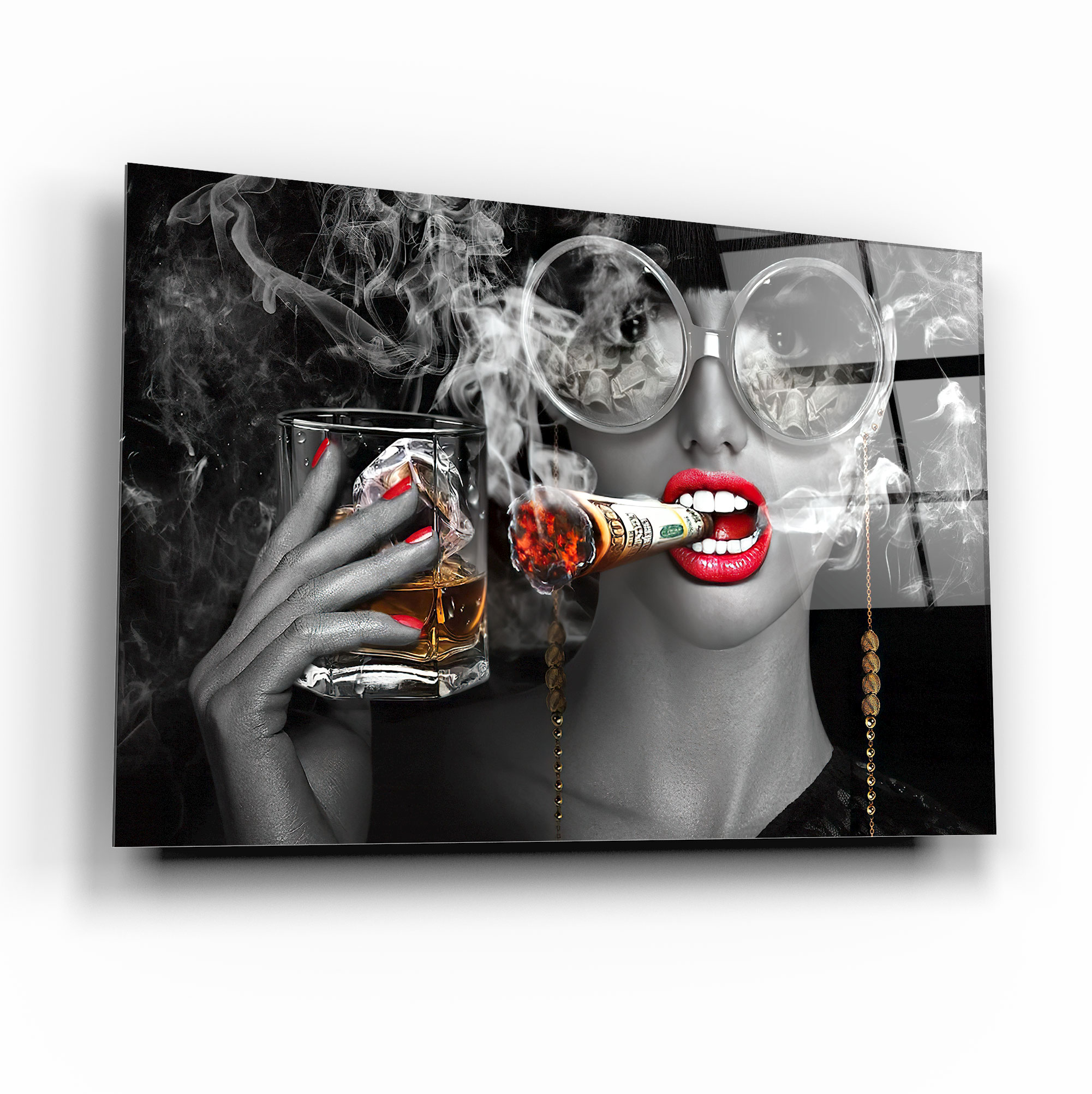 Sigara Kadın Para Kırılmaz Cam Tablo