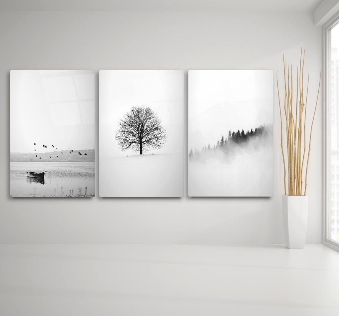 Siyah Beyaz Manzara Kırılmaz Cam Tablo Seti