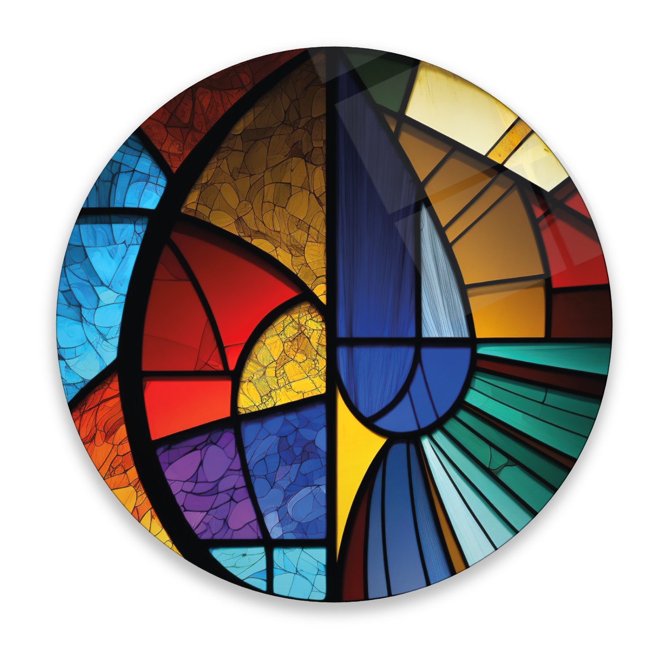 Soyut Vitray Yuvarlak Cam Tablo